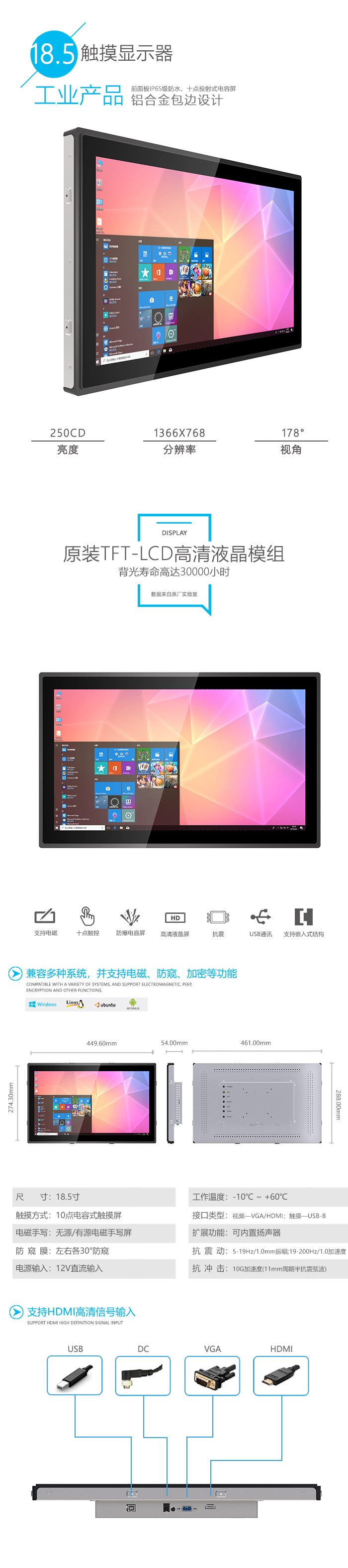 18.5寸触摸显示器