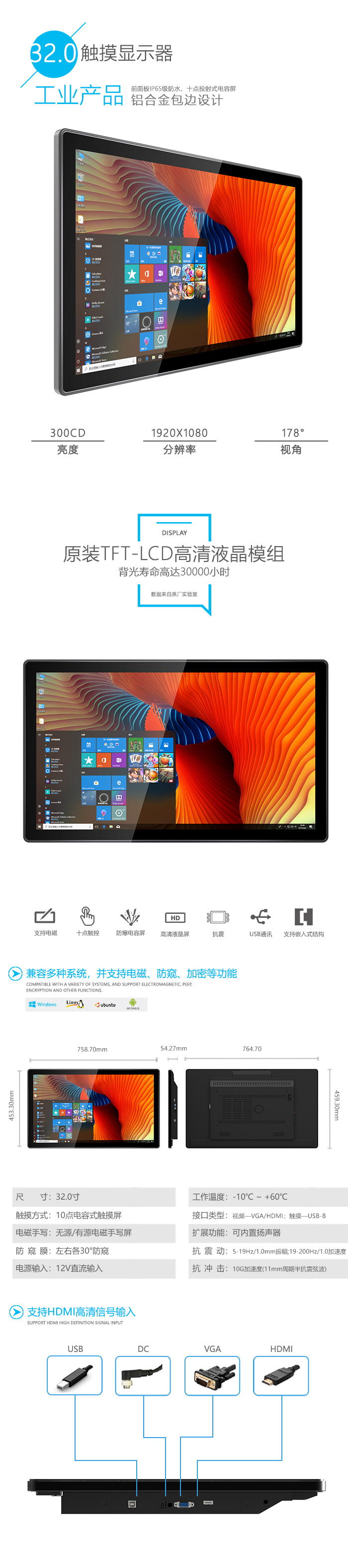 764.7±0.3 x 459.3±0.3 x 51.0±0.3 mm(长*宽*厚) |